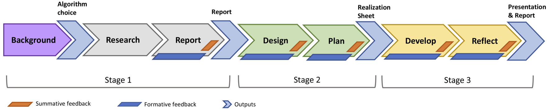 Visualizations are nowadays appearing in popular media and are used everyday in the workplace. This democratisation of visualization challenges educators to develop effective learning strategies, in order to train the next generation of creative visualization specialists. There is high demand for skilled individuals who can analyse a problem, consider alternative designs, develop new visualizations, and be creative and innovative. Our three-stage framework, leads the learner through a series of tasks, each designed to develop different skills necessary for coming up with creative, innovative, effective, and purposeful visualizations. For that, we get the learners to create an explanatory visualization of an algorithm of their choice. By making an algorithm choice, and by following an active-learning and project-based strategy, the learners take ownership of a particular visualization challenge. They become enthusiastic to develop good results and learn different creative skills on their learning journey.